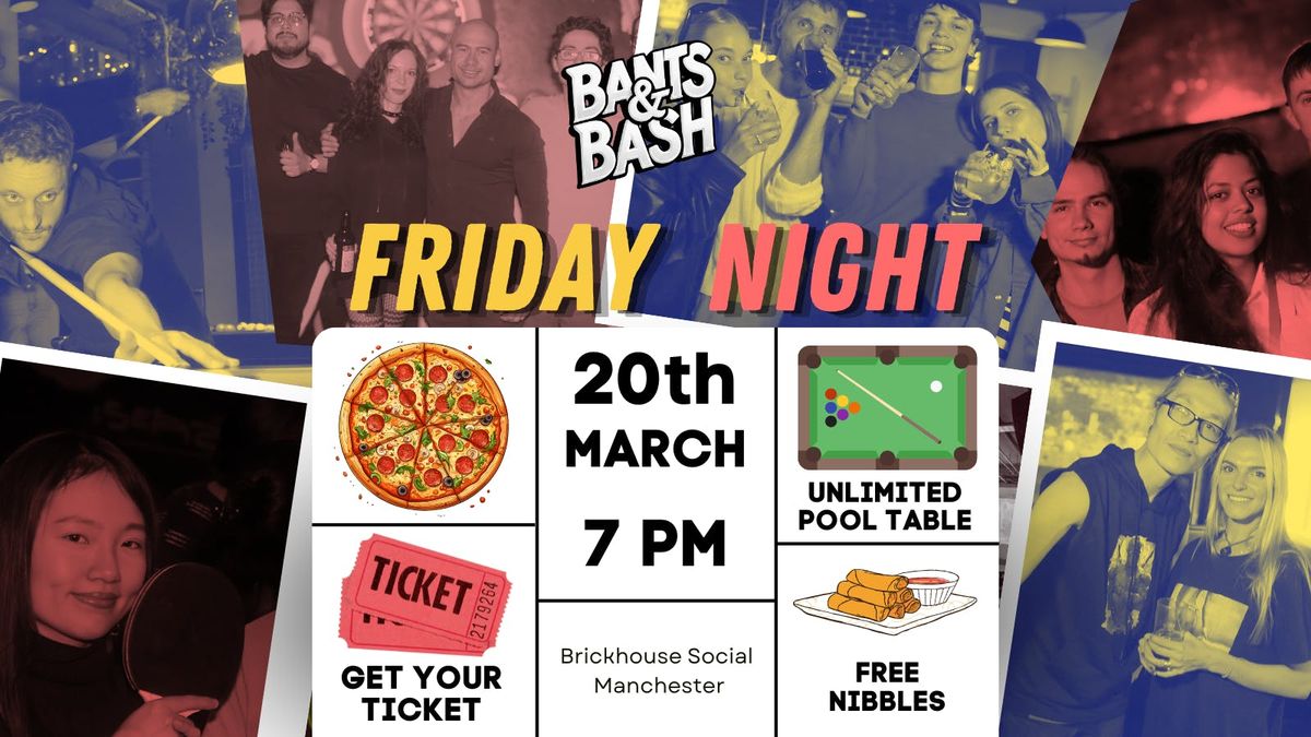 ? Bants & Bash: Friday Night Pool Social Unlimited Games \u2022 Free Snacks \u2022 Up to \u00a3100 Prize Hamper