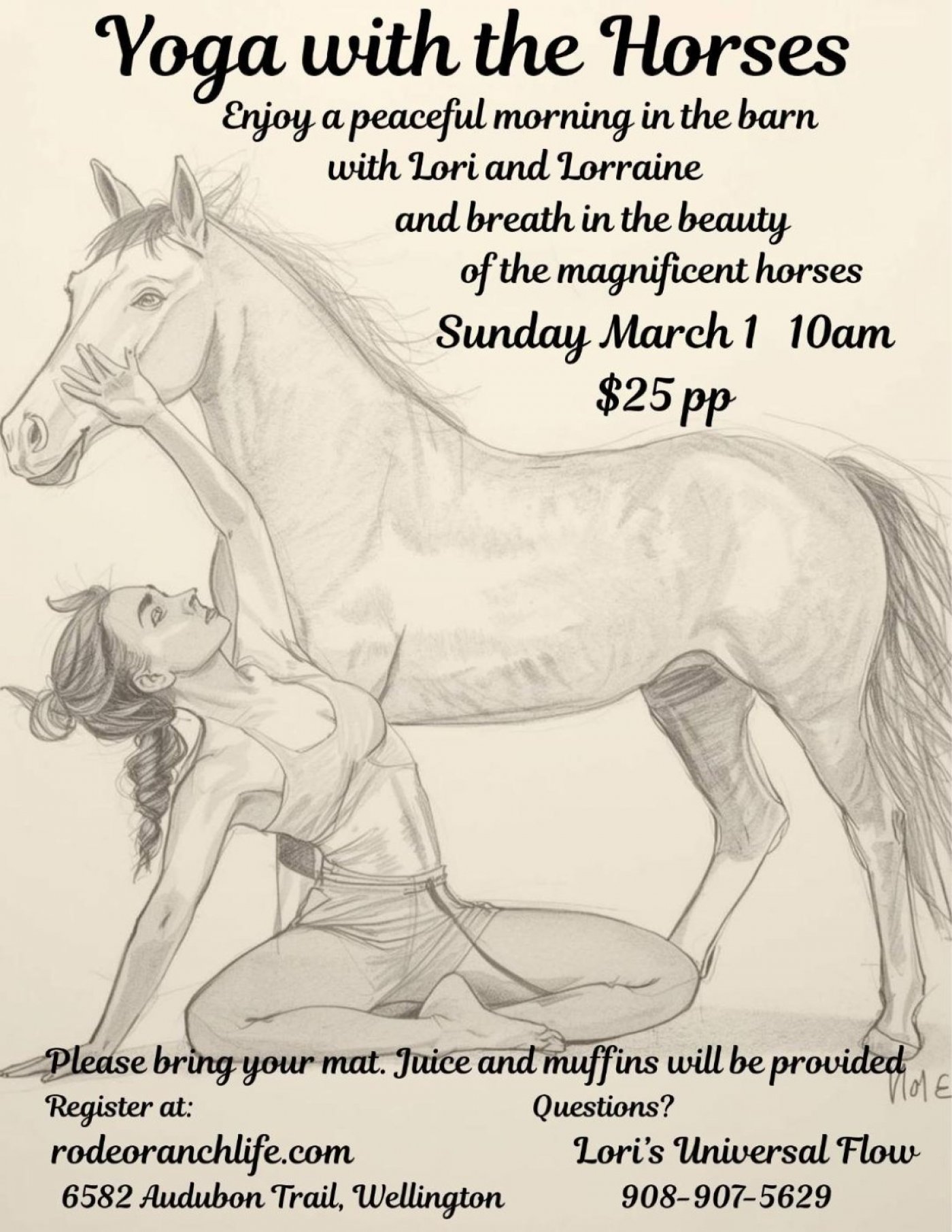 Join me for a truly special morning of yoga surrounded by horses, fresh air, and great energy. After class, stay and enjoy a light brunch with orange juice, fruit, and muffins.
