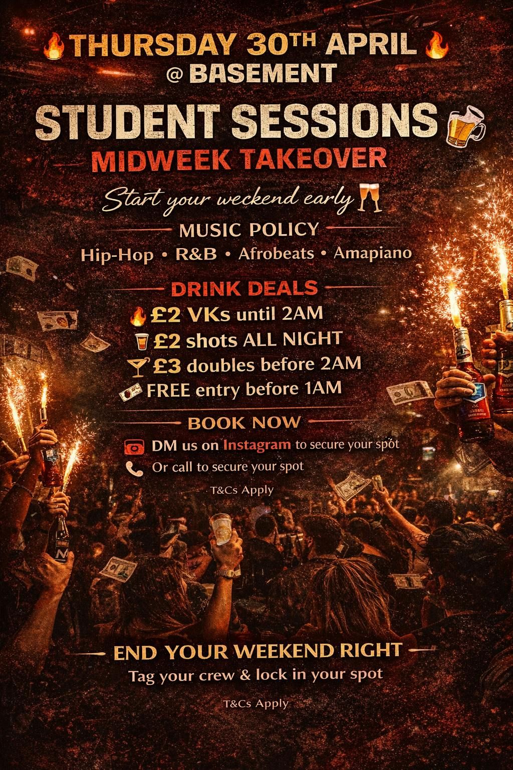 🔥 THURSDAY 30TH APRIL @ BASEMENT 🔥🎓 STUDENT SESSIONS – MIDWEEK TAKEOVER