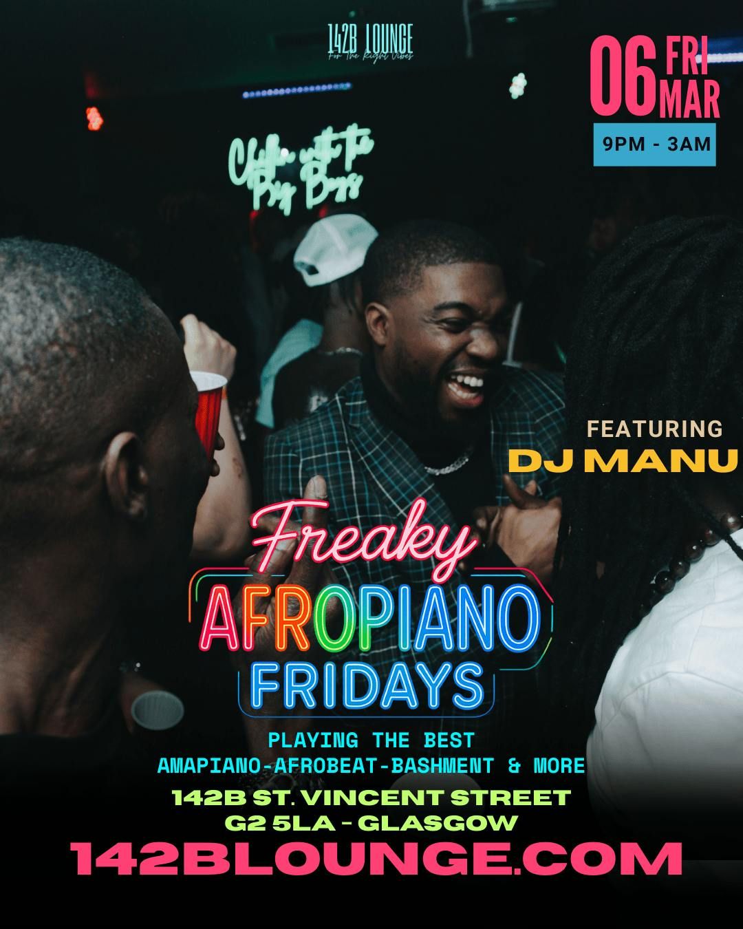 #FreakyAfroPianoFridays #MarchTingz #142BLounge #DJManu #DJFlexOnDecks #HypemanG1 #GlasgowTurnUp #OutsideOutside #NoPassengers #FullSendFridays #CertifiedShelling