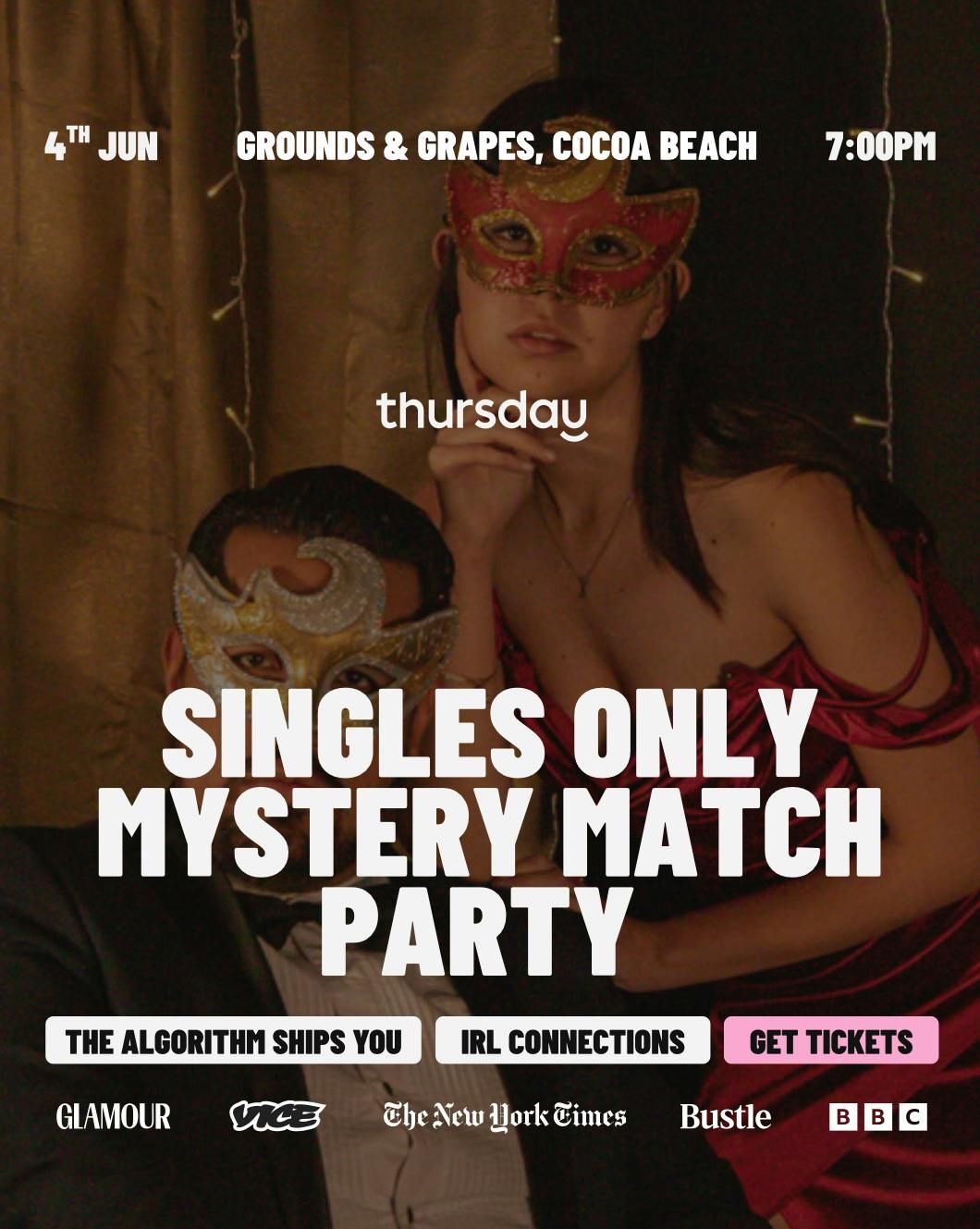 \ud83d\udd75\ufe0fThursday | Singles Only Mystery Match Party | Cocoa Beach, FL