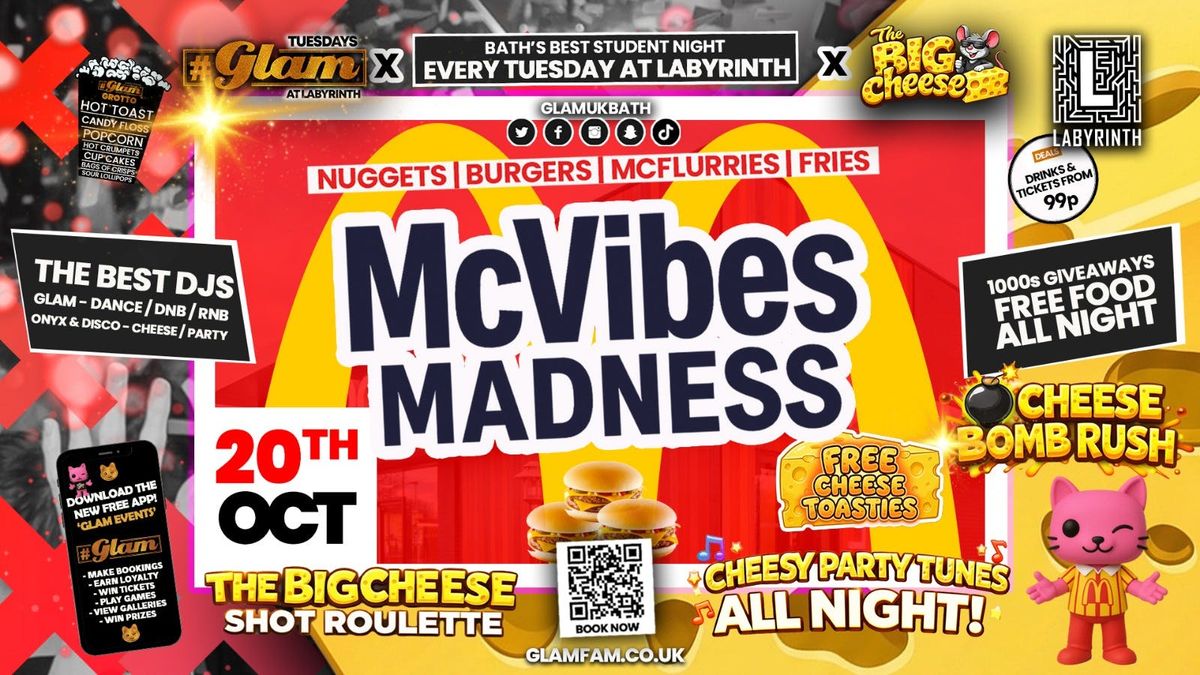 ๐พ BATH'S CHEESY STUDENT NIGHT!! ๐พ๐ป Glam x The Big Cheese! ๐งEvery Tuesday Glam x The Big Cheese takes over at Labyrinth ๐ป๐ง LIMBO AT THE BIG CHEESE WITH THE WEEKLY LIMBOCAM!๐ฅ 5 SHOTS FOR ยฃ5 WITH THE BIG CHEESE SHOT ROULETTE ALL NIGHT!!One of them might ruin your nightโฆand thatโs exactly why youโre doing it.๐ฃ GLAM x THE BIG CHEESE BOMB RUSH! ๐งRandom explosive moments. Hear the Big Cheese Song and its straight to the bar for BOMBARDMENT! Cheap bombs for the duration of the song!๐ง FREE CHEESY SNACKSYes, itโs free.Yes, youโll want it.๐ถ CHEESY PARTY TUNES ALL NIGHT ๐งGuilty pleasures. Throwbacks. Singalong chaos. No shame. Full energy.FOR YOU CATS THAT ARE NOT INTO CHEESE (or pretend not to be!) Glam will still be popping all the latest Dance, DnB and Urban songs in Main room all night EVERY week!๐๏ธ ADVANCE TICKETS from 99p ๐๏ธGuarantee Entry, Avoid the Queues & Save on Door Entry ๐ซ๐ฅค DRINKS DEALS ๐THE BEST drinks deals in Bath! Staying the same ALL NIGHT!! ๐โฅ๏ธ 99p BOMBS! (pre 11.30pm / ยฃ1.50 After) ๐ฃโฅ๏ธ ยฃ3.70 Spirit & Mixersโฅ๏ธ ยฃ2.50 VK Bottlesโฅ๏ธ ยฃ2.50 Solโฅ๏ธ ยฃ3 Budweiser๐ฒ DOWNLOAD THE BRAND NEW GLAM APP - 'GLAM EVENTS' ๐ฒEarn Free Tickets, Play a wide range of Free Games, Birthday Gifts, Exclusive Prizes, Access Galleries and more!๐ป WHAT TO EXPECT AT GLAM...๐ 1000โs OF FREE GLOW STICKS ๐ซ๐ UV RAVE BATONS ๐๐ LED FINGER LIGHTS! ๐ก๐ SHADES AND SHUTTER SHADES! ๐ถ๐ THOUSANDS OF LOLLIPOPS ๐ญ๐ BUBBLE GUNS ๐ซง๐ LIMITED EDITION GLAM CAPS ๐งข & T SHIRTS! ๐๐ WIN GLAM VIP CARDS ๐ณ๐ EXCLUSIVE GLAM MERCHANDISE ๐๐ LOADS OF FREE INFLATABLES AND XL INFLATABLES ๐๐ STUNNING EVENT PRODUCTION ๐ฅ๐ THE BIGGEST CONFETTI CANNONS ๐๐ AMAZING VENUE TRANSFORMATION โญ๐ GLAM LED GLASSES & PHOTO BOARDS! ๐คฉ๐ HUGE LASER, UV AND LIGHT SHOW ๐ฆ๐ MEET GEORGE THE GLAM CAT MASCOT ๐ป๐ GET SNAPPED BY OUR PRO PHOTOGRAPHER ๐ธ๐ CAPACITY EVENTS ๐๐พ๐ THE FINEST CROWDS IN THE COUNTY ๐บ๐ผ๐ THE GLAM TEAM WITH EXTRA SURPRISES ๐ฏ๐ UNRIVALLED ENTERTAINMENT THROUGH THE NIGHT ๐๐ต DJ LINE UP ๐We also have the country's best resident DJโs every week providing the finest soundtrack! ๐ค๐ Onyx โ The Big Cheese! ๐ง๐ Glam Main Room โ Dance, D&B & Urban ๐ง๐ Disco โ The Big Cheese! ๐ง๐ GLAM GROTTO ๐Free Food and Snacks FREE ALL NIGHT!! ๐FREE TOAST ๐CRISPS ๐ฅCRUMPETS ๐CANDY FLOSS ๐LOLLIPOPS! ๐ญCUP CAKES ๐งPLUS THE BIG CHEESE WITH SOME CHEESY EXTRAS! ๐ง๐ BIRTHDAYS AT GLAM x The BIG CHEESE ๐พAre you celebrating your Birthday with us on Tuesday at Glam?Contact us in advance for a special birthday deal!๐ฅ VIP BOOTH EXPERIENCE ๐ฅContact us on social media for our stunning VIP packages!๐ฒ STAY CONNECTED ๐ฒRegularly on the Glam social media we give away VIP packages, Exclusive Rep Positions Glam merchandise plus lots more so...Stay Connected: ๐ @GlamUKBath on Socials!GLAM INSTAGRAM ๐ฒGLAM TIKTOK ๐๐ธ FACEBOOK - GLAM PICTURES CAN BE SEEN HERE ๐ธ๐ย http://www.glamfam.co.uk/SPACE AVAILABLE ALL NIGHT ON THE DOOR FROM 10pm - 2am (club is open till 3am) ๐กWelcome to the ultimate student event experience with the Glam Fam and now with the brand new Big Cheese! ๐ Whether youโre looking to make memories, meet new friends, or just have a blast, our Glam Student Events are the purrfect way to take a well-earned break from your studies! ๐ฏFrom exclusive parties and themed nights to exciting giveaways and interactive activities, we've got something for everyone! ๐พ๐๐๐๐๐๐The Glam x The Big Cheese TeamFor full Terms and Conditions visitย www.glamfam.co.uk
