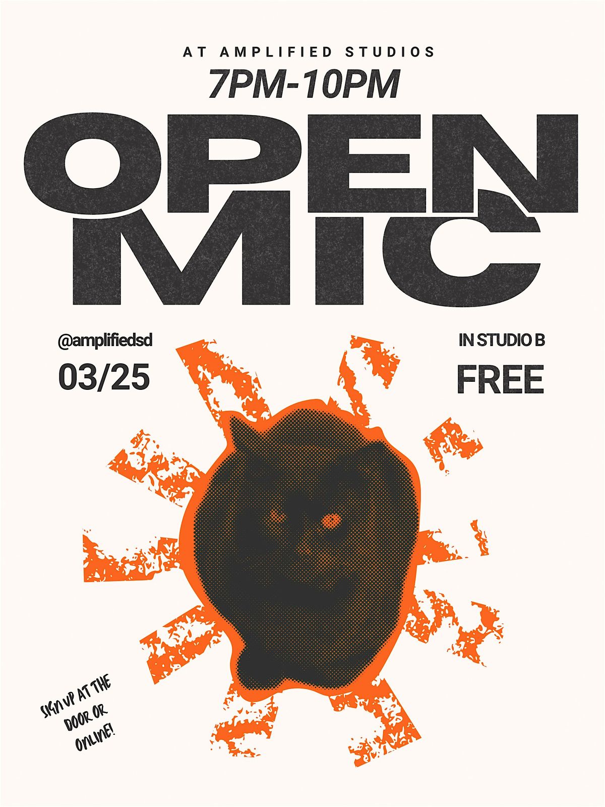 If you see the event is sold out online, don't worry. You can still sign up at the door. We will have two more open mics next month.