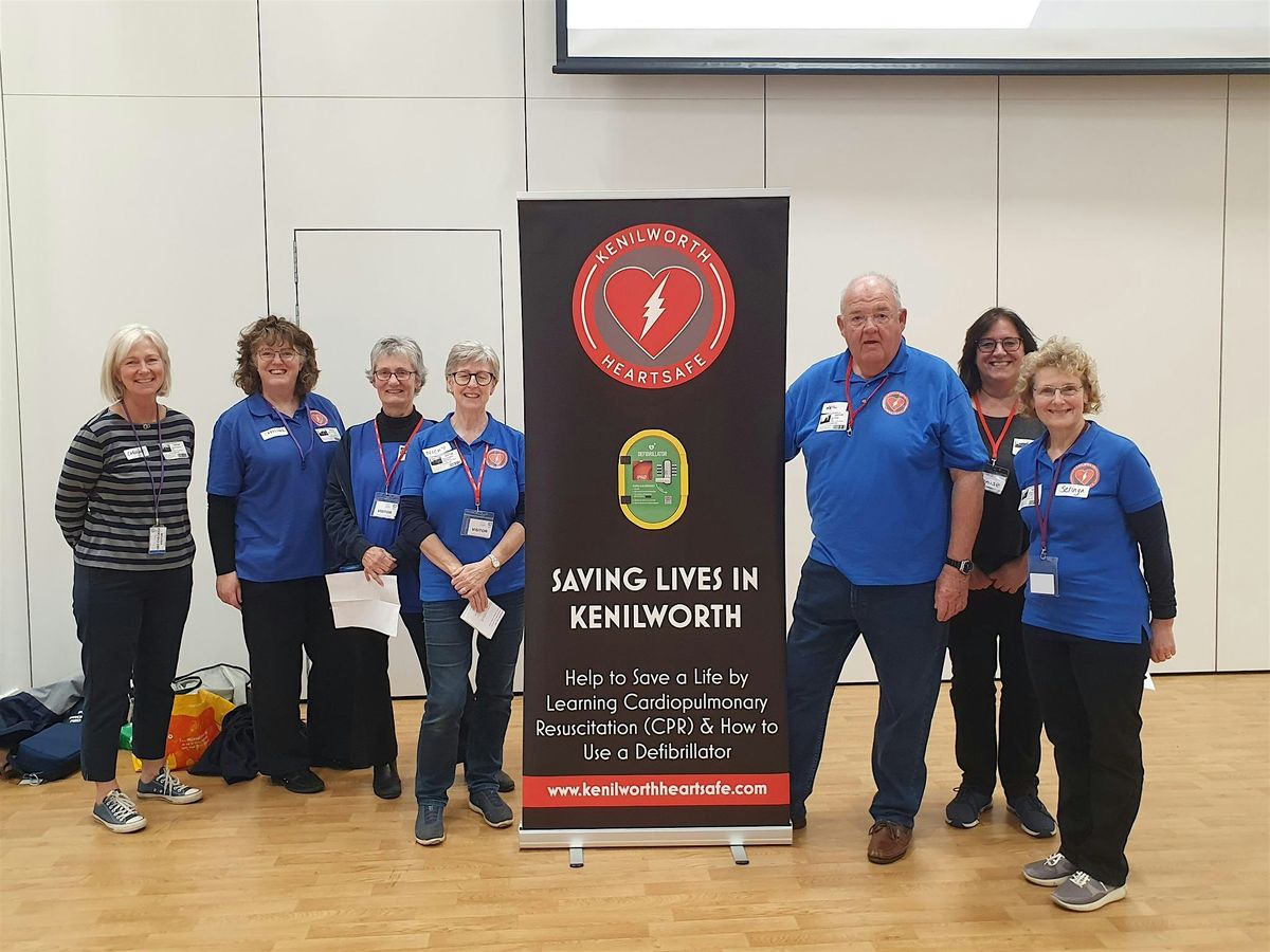 Our 90 minute free hands on training for people in Kenilworth and area shows you how to do CPR and use an AED.