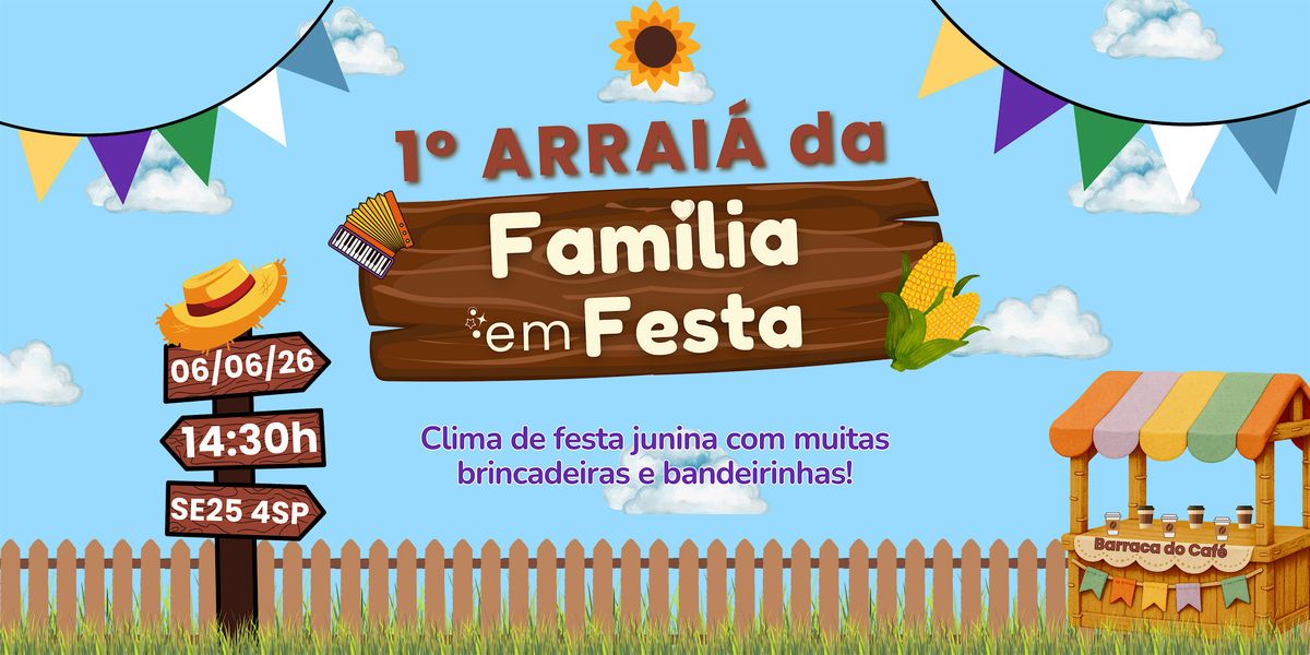 Convidamos sua família a vir vestida a caráter para entrar ainda mais no clima do nosso Arraiá — Mas isso não é obrigatório. O mais importante é que todos se sintam confortáveis para aproveitar a tarde.
