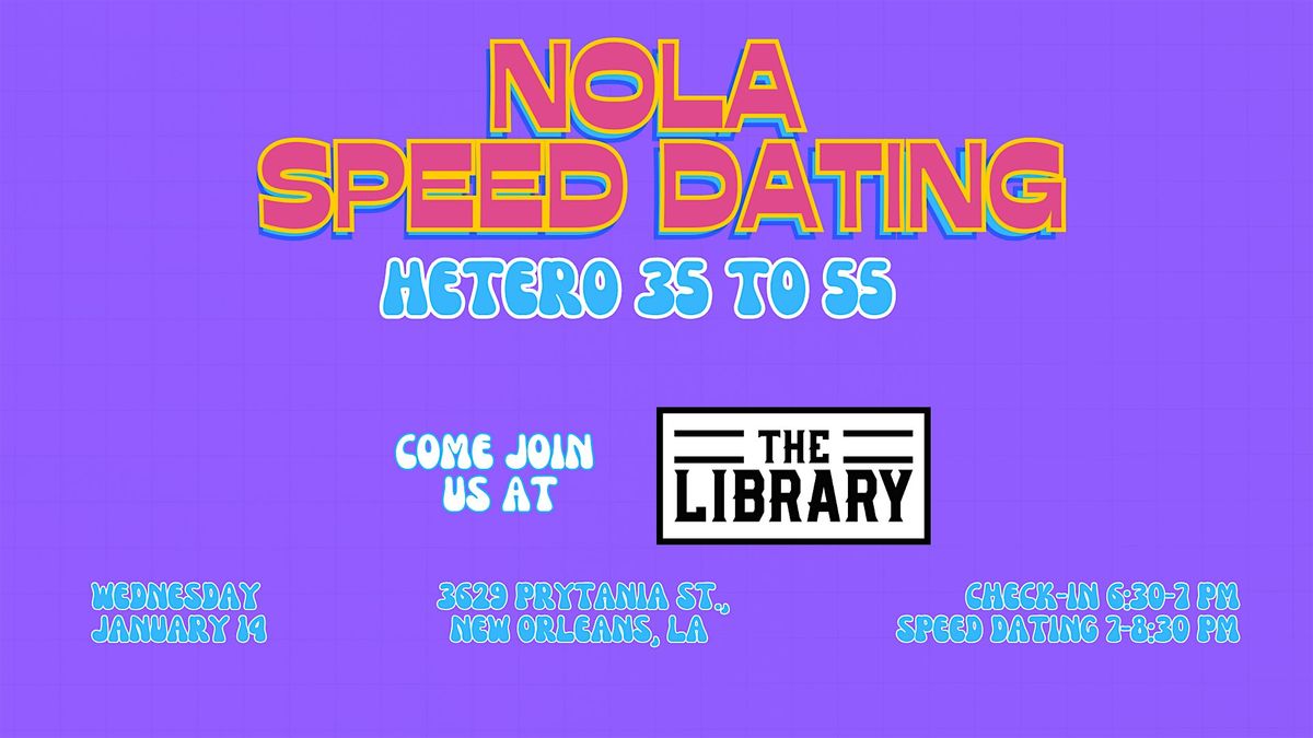 Thank you for your interest in attending a NOLA Speed Dating Event! We will be hosting this round at The Library at 3629 Prytania St. This event is designed for people attracted to the opposite gender between the ages of 35 to 55.
