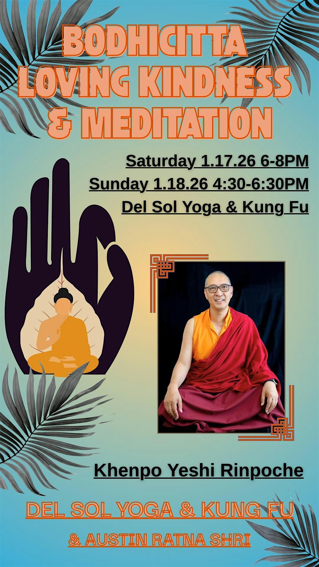 Join us in person for an inspiring session exploring bodhicitta, the heart of compassion, alongside powerful loving kindness practices. Learn from the wisdom of Khenpo Yeshi Rinpoche and deepen your meditation experience in a welcoming, down-to-earth setting. Whether you’re new or experienced, this event offers a unique chance to connect, reflect, and grow. Don’t miss out on this special opportunity to nurture peace and kindness!