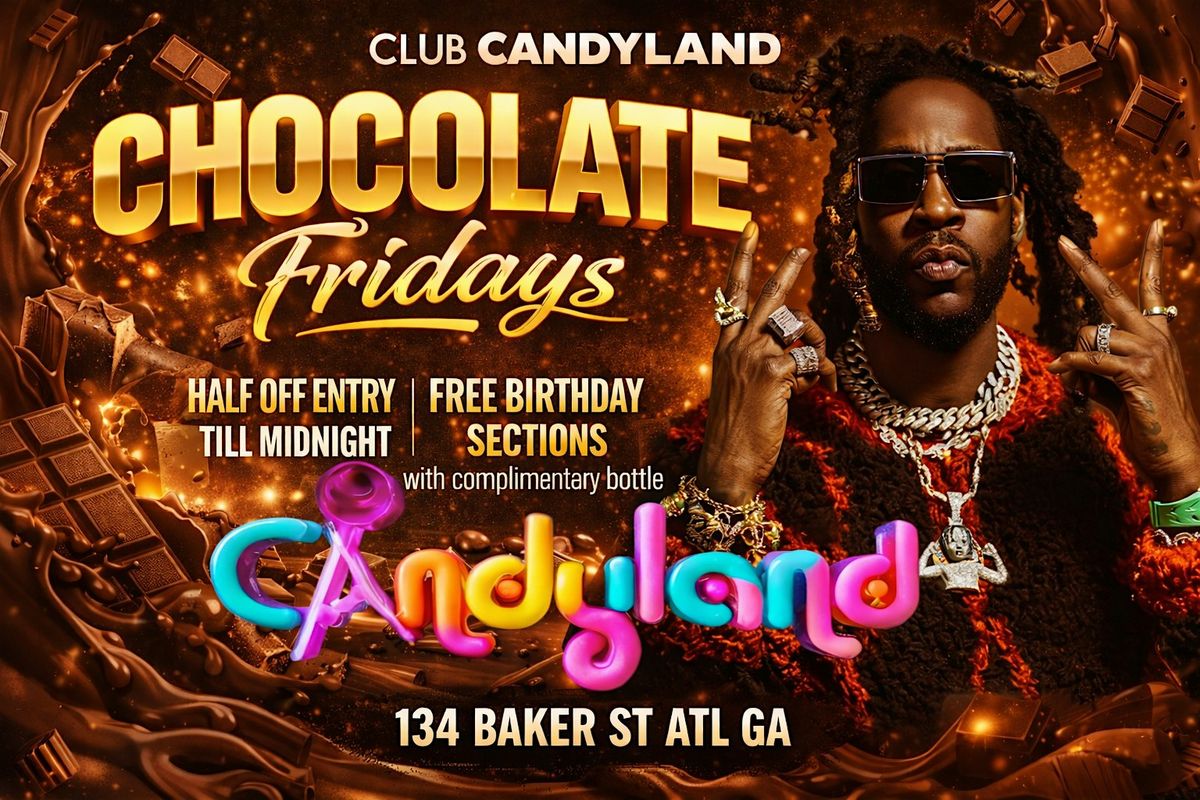 Get ready to vibe every Friday night at 2Chainz Club Candyland for Chocolate Fridays! This is your ultimate in-person spot to chill, dance, and indulge in all things sweet and fun. Bring your crew, enjoy the beats, and let the weekend kickoff be as smooth as chocolate. Don’t miss out on the coolest Friday hangout in town!
