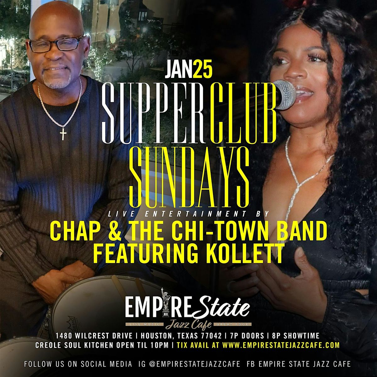 Welcome to the Empire State Jazz Cafe on January 25, 2026 atDoors 7:00 PM | Showtime 8:00 PM for 1/25 - Chap & The Chi-Town Band feat. Kollett Sunday! Get ready for a night of incredible music and unforgettable performances. Join us at this iconic venue and experience the magic live. Don't miss out on this opportunity to enjoy great music with friends and family. See you there!