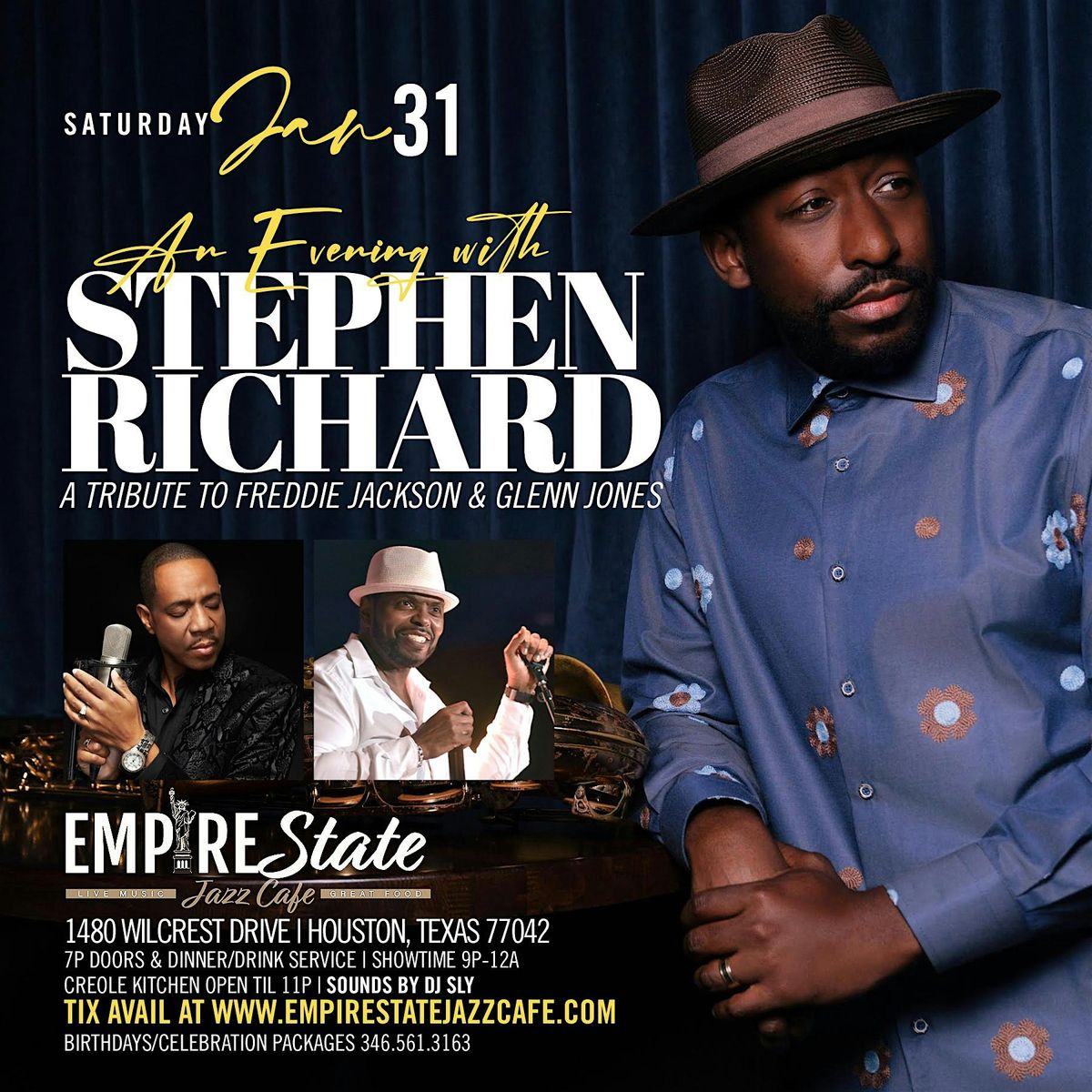 Come and enjoy Stephen Richard Tribute to Freddie Jackson & Glenn Jones on January 31, 2026 at Doors 7:00 PM | Showtime 9:00 PM (Central Time).
