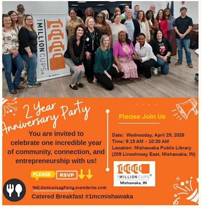 Come celebrate 2 awesome years of networking, coffee, and community with 1 Million Cups Mishawaka!About this Event