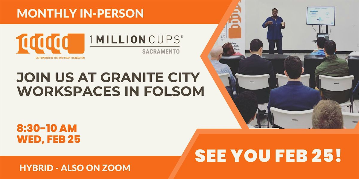 1 Million Cups Sacramento is having an in-person meetup on Wednesday, February 25, at Granite City Coworking.