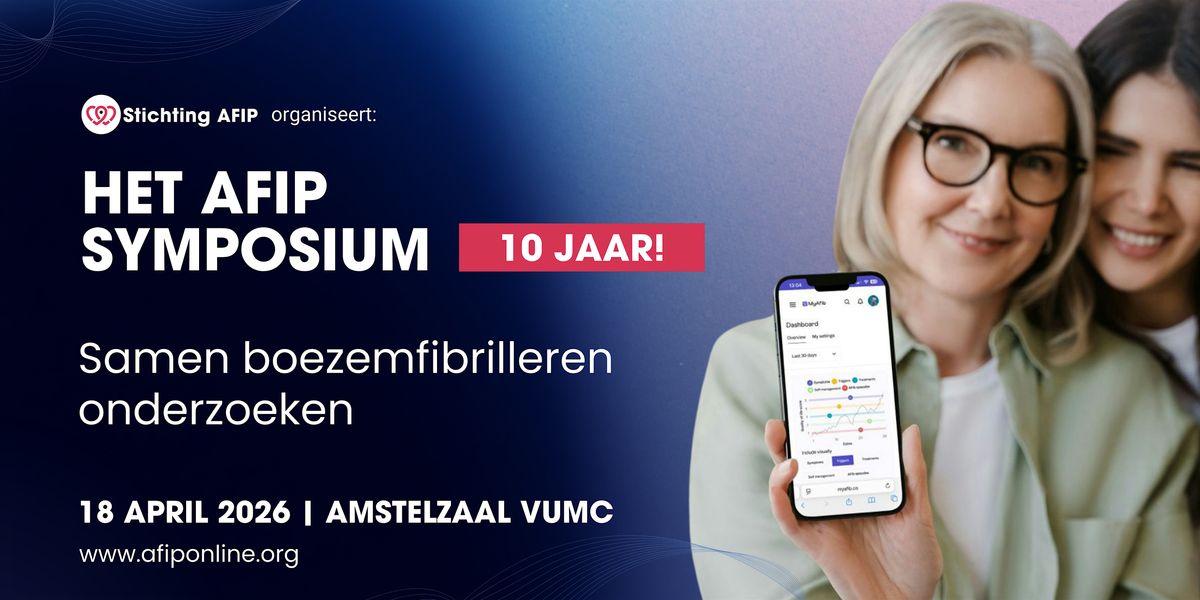 Kom en sluit je aan bij ons op 18 april 2026 om 10:00 uur in het VUmc (Amstelzaal) voor het jubileumsymposium van Stichting AFIP. Leer over boezemfibrilleren van experts, deel je eigen ervaringen en krijg een breder perspectief op deze aandoening. Het wordt een informatieve en interactieve sessie waarin we samen streven naar meer begrip en kennis over dit onderwerp. Mis het niet!