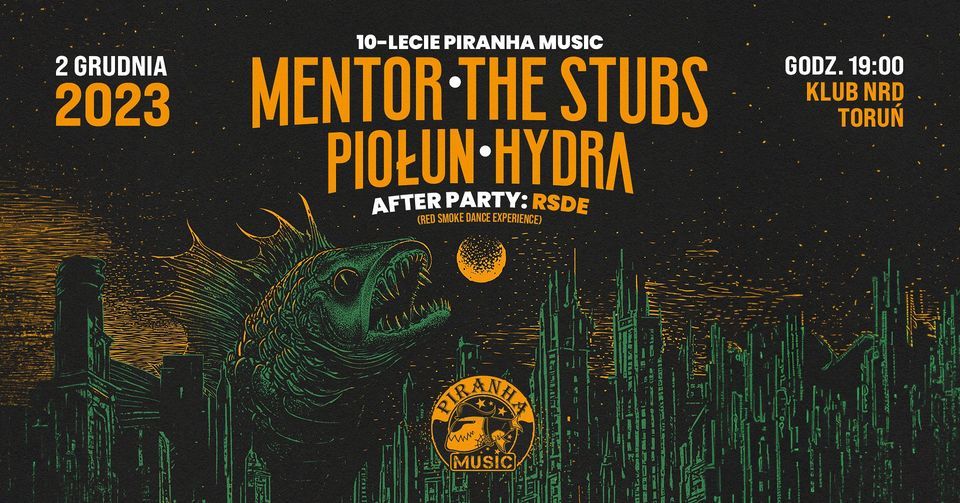 10-lecie Piranha Music: Mentor, The Stubs, Pio\u0142un, Hydra \u2022 after: RSDE \u2022 02.12 \u2022 Toru\u0144, NRD