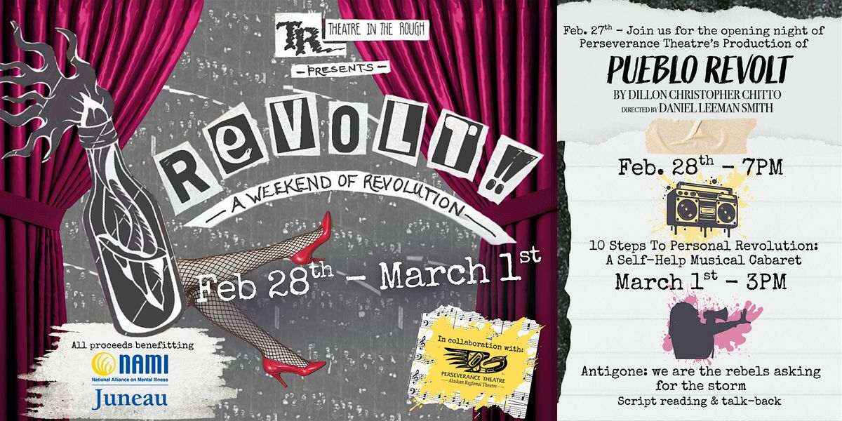 Do you feel tired and hopeless from the state of the world? Do you feel like a cog in the capitalist system? We're here to help! Join us for "10 Steps to Personal Revolution: A Self-Help Cabaret", where some of Juneau's finest performers will give you the steps you need. Told through popular songs from musical theatre and a hilarious script by local playwright Amanda Breslow, this cabaret will show you how to spark a little revolution in your life and community! All proceeds from this event will be donated Juneau NAMI.