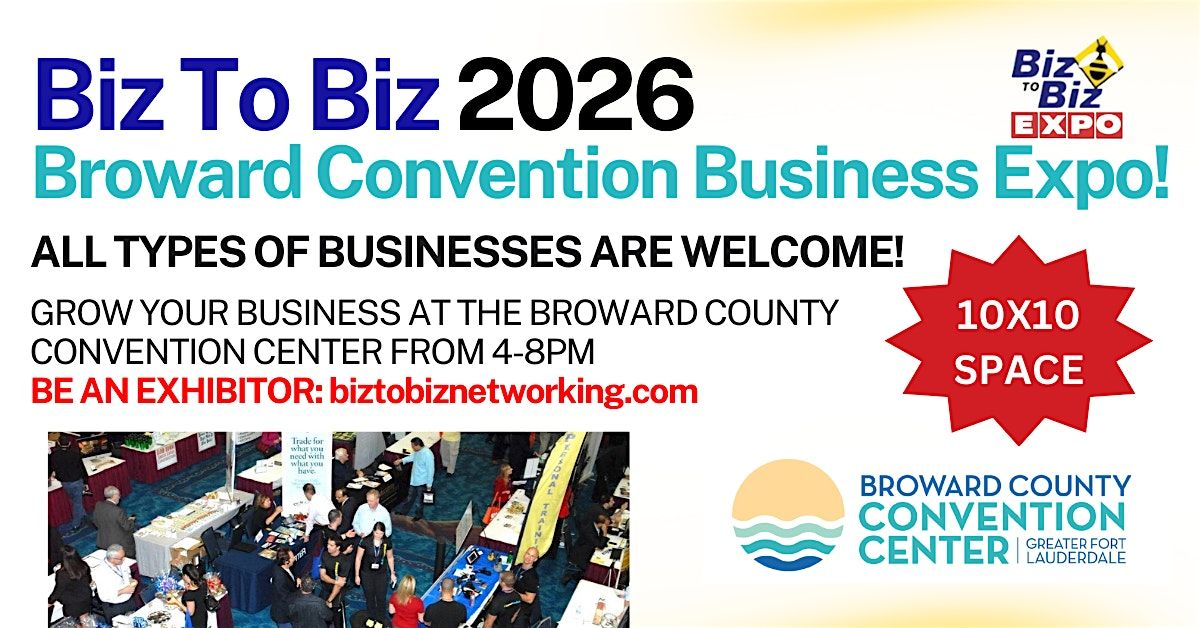 BIZ TO BIZ 2026 BUSINESS EXPO ....has something for everyone... all types of exhibitors are welcome to exhibit their products and services. Book your Exhibitor space early for prime locations. Over 10,000 sq.ft. of exhibitor space at the beautiful Broward Convention Center.