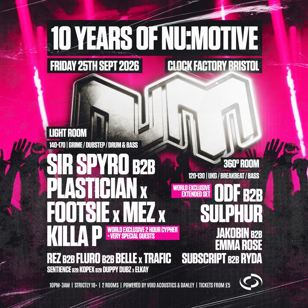 After a string of shows celebrating a landmark 10 years in the game, Nu:Motive lands at Clock Factory Bristol on Friday 24th September.Music Genres : Rap, Dubstep, Grime