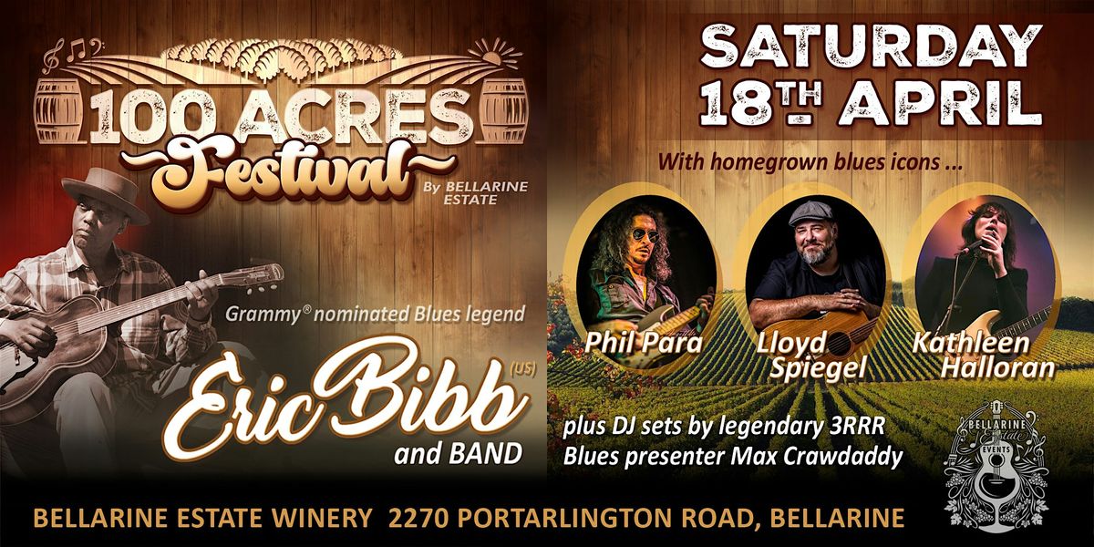 Set amongst the rolling hills and vines of the family-run Bellarine Estate, 100 Acres Festival promises to be a highlight on the Australian music calendar, bringing together the finest in local and international blues talent against a beautiful autumnal vineyard backdrop.