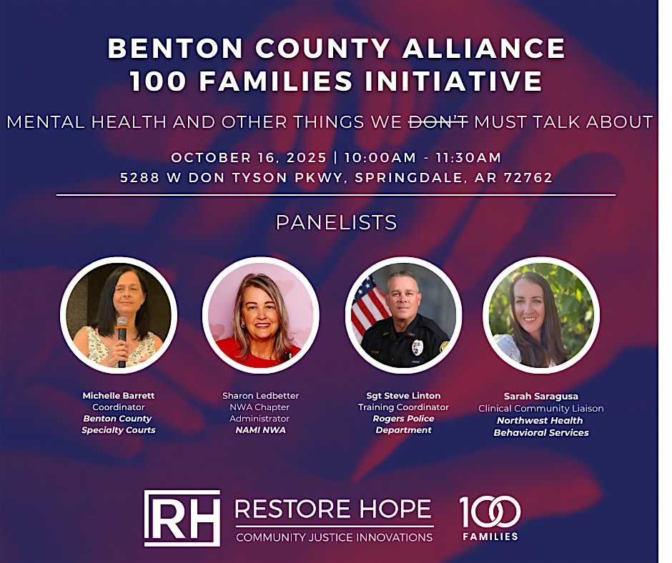 There are many things we don't discuss in order to avoid conflict, or because we need to navigate challenging circumstances or avoid stygma(s). Come join us as our Benton County Alliance hosts a discussion on: Mental Health, and Other Things We (Don't) Must Talk About. Come ready to learn and discuss as our panel of experts share their perspectives and then answer questions from the public.