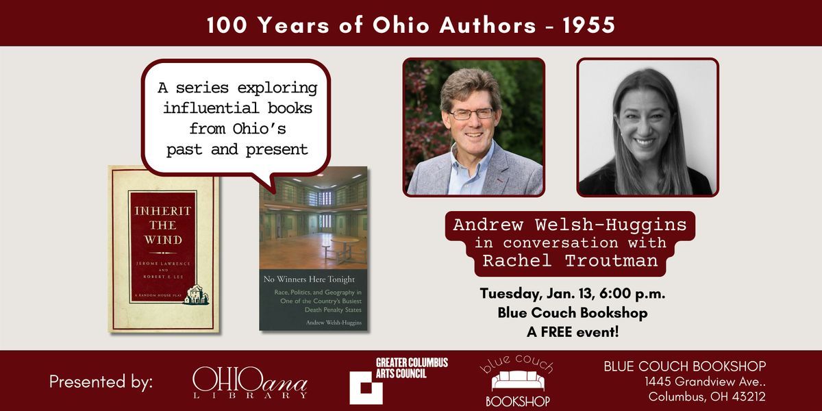 On January 13 at 6:00 p.m. at Blue Couch Bookshop, we'll cross-examine 1955’s historic play Inherit the Wind, written by Jerome Lawrence and Robert E. Lee. Contemporary author Andrew Welsh-Huggins will discuss this historic work, his own book No Winners Here Tonight, and the justice system with attorney Rachel Troutman.
