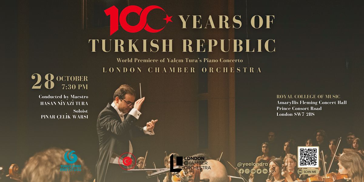 To commemorate a century since the declaration of the Republic of Türkiye, this celebratory concert will showcase the world premiere of the distinguished Turkish composer Yalçın Tura's latest piano concerto, making it the highlight of the evening. Guiding us through this musical journey in collaboration with the prestigious London Chamber Orchestra will be Tura’s son, the outstanding composer and Principal Conductor of the Istanbul State Symphony Orchestra, Hasan Niyazi Tura. The concert's centrepiece, a magnificent piano concerto, will feature the pianist Pınar Çelik Warsi, who will perform alongside the renowned London Chamber Orchestra.