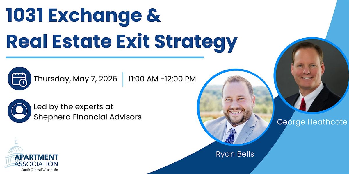Join the experts at Shepherd Fiancial Advisors, Ryan Bells and George Heathcote, for a discussion on real estate exit strategies available for multi-family professionals and their investments. Have you been considering an exit stratgy for your long term investment, but do not know where to start? This is a great opportunity to explore your options, talk with professionals, and make a plan for your future.
