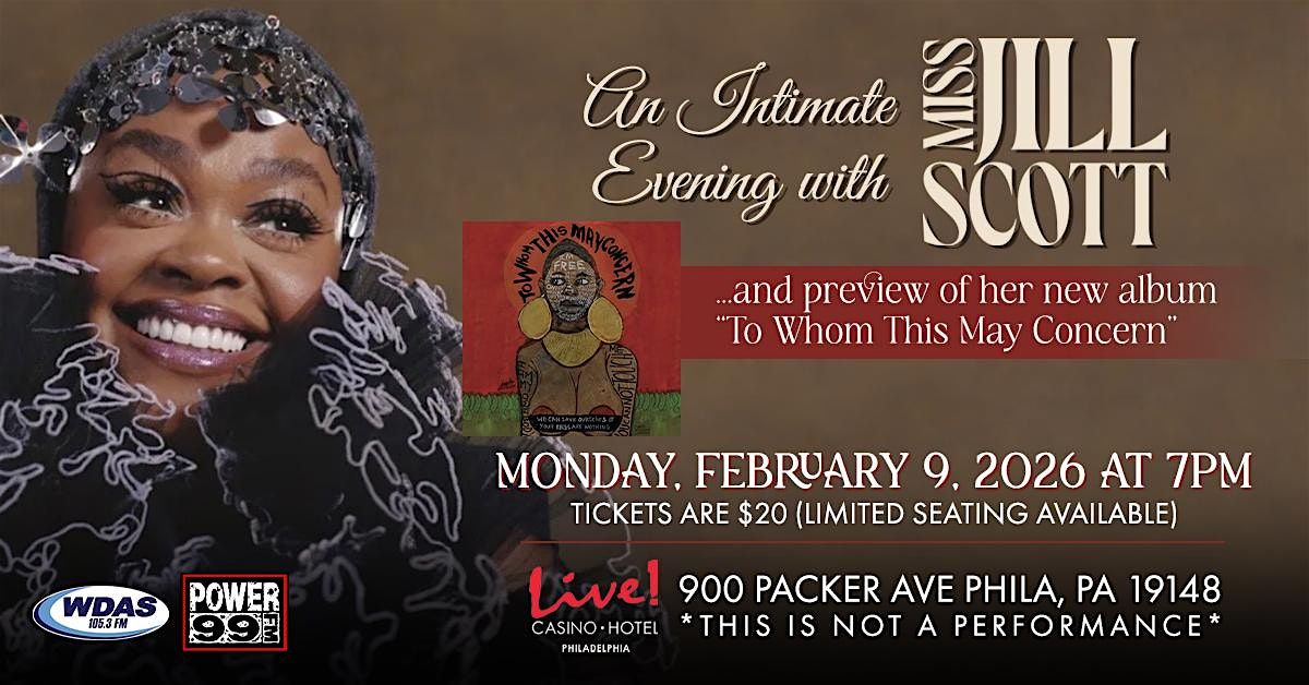 105.3 WDAS along with Power 99 are proud to present an intimate evening with Jill Scott, taking place Monday, February 9th at Live! Casino Philadelphia.