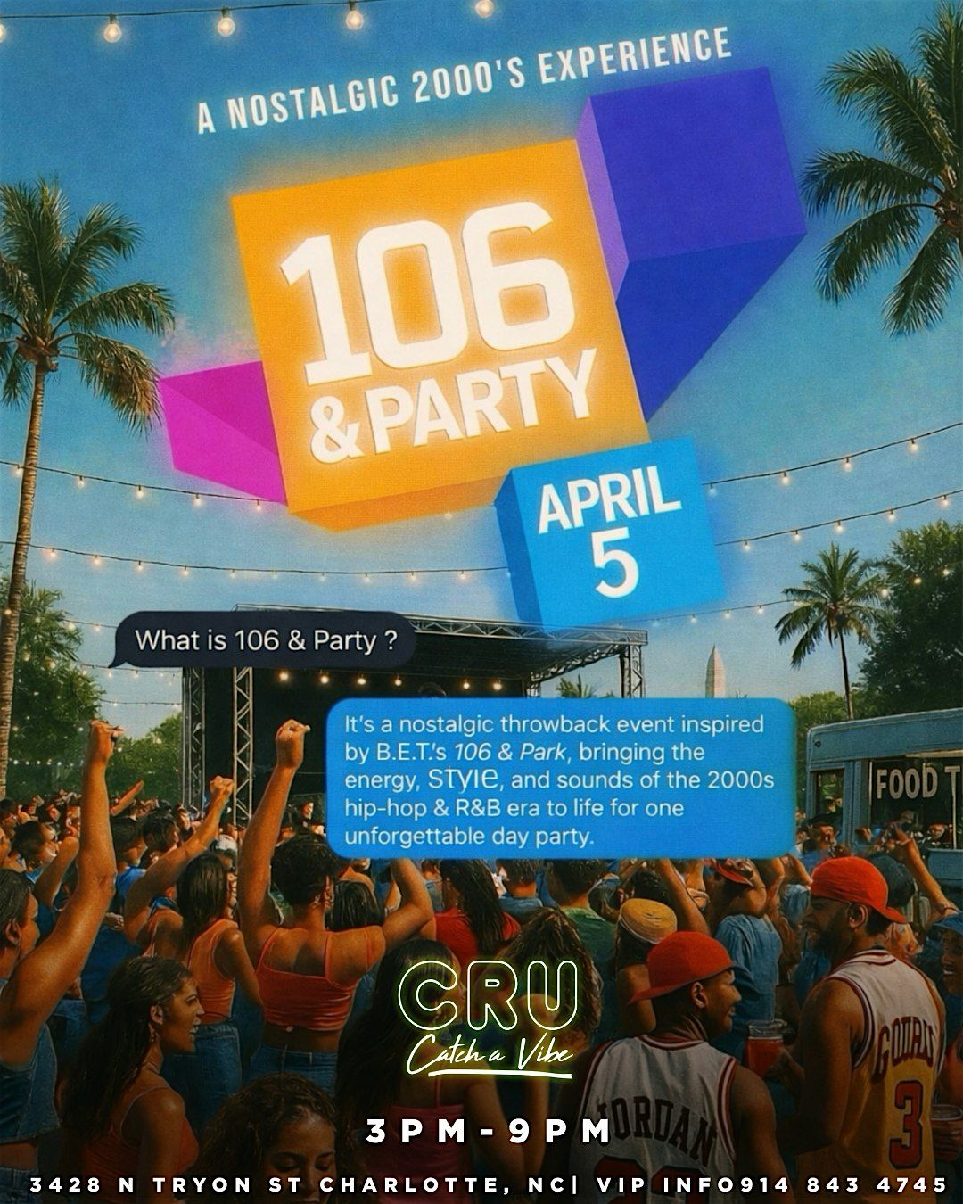Sunday, April 5th, step into 106 & Party — a nostalgic day party inspired by the iconic 106 & Park, bringing the energy, style, and sound of the 2000s back to life.