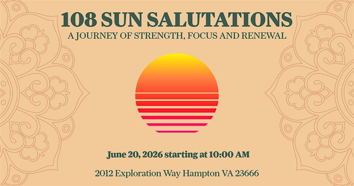 A moving meditation that honors the change of season, new beginnings, or your personal intention.The number 108 holds deep significance in yoga, astrology, and spiritual traditions. It symbolizes wholeness and completion. Every round is a step inward, cultivating mindfulness, discipline, and inner peace.Whether you're seeking a physical challenge, mental clarity, or spiritual release, this sacred sequence offers a powerful way to reconnect with your breath, body, and community.All levels are welcome to participate at this event. There will be modifications available and you are encouraged to take your rest as needed.This is a free community event using the General Admission ticket option on event brite. Additionally, there is a Donation based ticketing option available as well.Come as you are - Leave transformed. We'll see you on the June 20th!