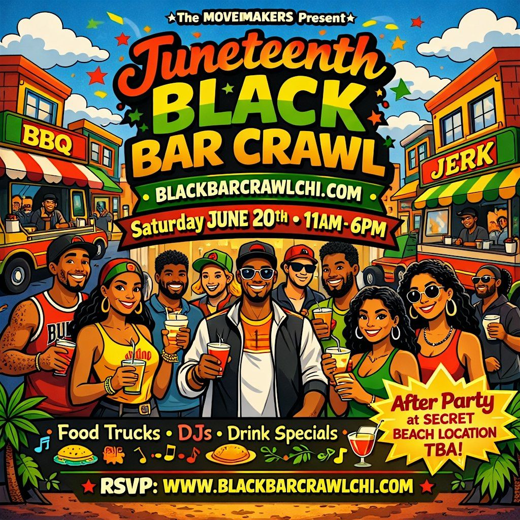 The 10th Annual Black Bar Crawl Chicago is a vibrant celebration of culture, community, and nightlife, bringing thousands together to support and experience some of Chicago’s best Black-owned bars, restaurants, and venues. Crawlers will start at select Black-owned establishments throughout the South Loop and will also have access to our exclusive food truck garden featuring great food, music, and drink specials. The experience will end with an unforgettable after-party on the beach (location TBA); all guests must be 21+ to participate, and all ticket purchases are final with no refunds.