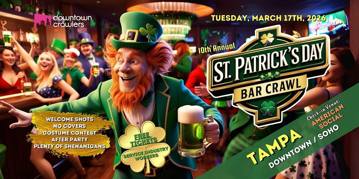 Tampa's premier St. Patrick's Day Bar Crawl. Get lucky with the Downtown Crawlers. Enjoy welcome shots, drink specials, good vibes.About this Event