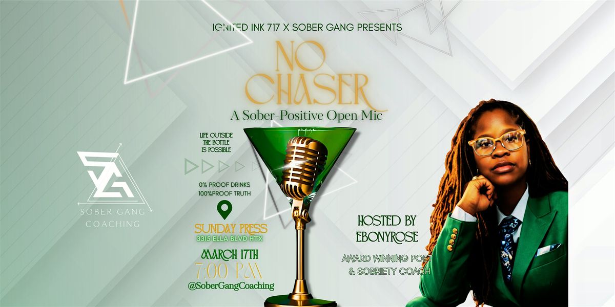 Get ready for a night of raw talent, good vibes, and a LIVE mocktail demonstration by 1700Mocktails at the 9th Round No Chaser Open Mic HTX! No Chaser Open Mic is a sober-centered open mic where creativity, connection, and presence take the lead. Hosted by Sobriety Coach + Award Winning Poet EbonyRose with Dj NoMad curating the vibes, Poetry, spoken word, music, and storytelling unfold in a space rooted in clarity, not alcohol. Whether you’re sober, sober-curious, or just craving something different, this night is for you. No two gatherings are the same. It’s always a unique experience.