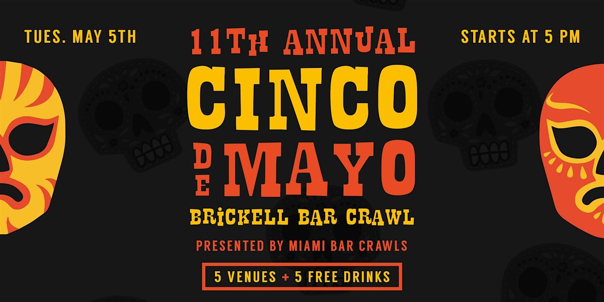 Join thousands of crawlers on Tuesday, May 5th for Miami's biggest Cinco de Mayo Bar Crawl! Crawl your way through BRICKELL and enjoy 5 FREE drinks + no cover at 5 participating bars!