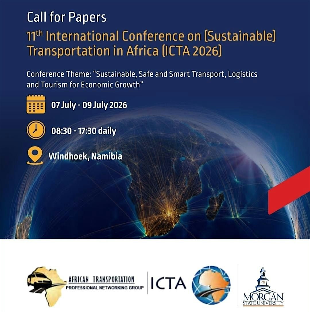 11th International Conference on Sustainable Transportation in Africa(ICTA2026) scheduled 7-9 July 2026 at Mercure Hotel, Windhoek, Namibia