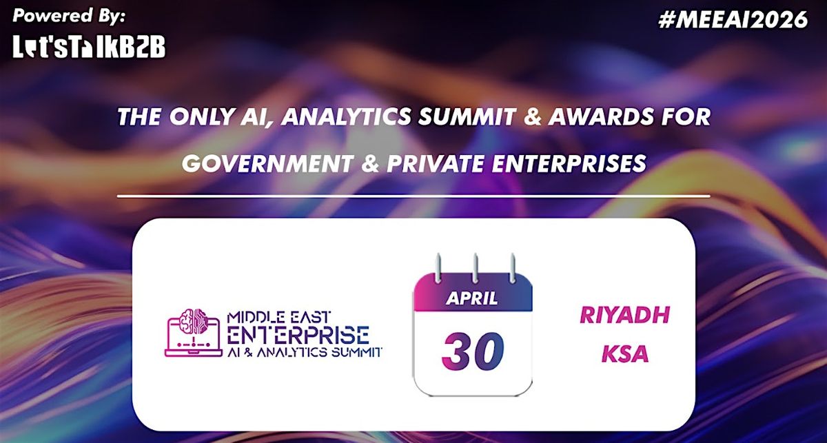 Enterprises must identify use cases and adopt AI and data analytics in business operations to enhance customer experience, maximize productivity, generate revenue, optimize costs, and manage risks and fraud. To support this, Let's TalkB2B is organizing the 11th Middle East Enterprise AI & Analytics Summit & Awards 2026 in KSA. This event will showcase how the integration of data, analytics, and AI is revolutionizing industries, unlocking new insights, enhancing decision-making, and driving innovation. Register now to gain industry perspectives on integrating AI & Analytics, created by and for regional leaders.
