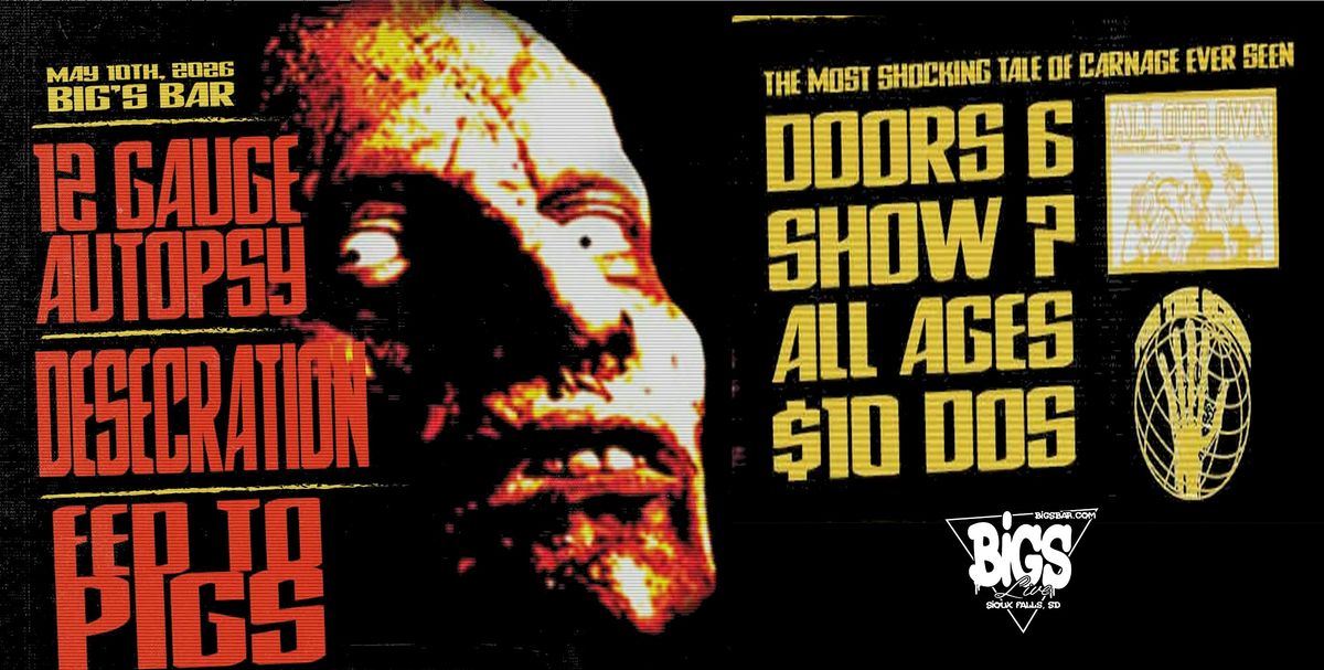 Get ready for a brutal night of raw metal chaos with 12 Gauge Autopsy, Desecration, and Fed to Pigs tearing it up live!