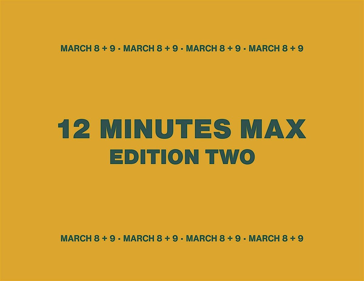 12 Minutes Max is a performance lab for new and experimental works, first developed by in 1981. In this series, artists present 12 minutes of material, while audiences get an opportunity to be the first to see works-in-progress, some of which will go on to become full-length pieces. 12 Minutes Max has inspired similar programs in Vancouver, B.C., Bellingham, Salt Lake City, Chicago, and Houston. Works presented range from performance art to dance, from experimental theater to sound art, from spoken word to comedy, and more.