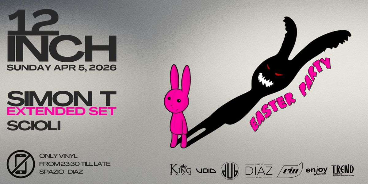 Domenica 5 aprile dalle 23:30, Spazio_Diaz ospiterà “12Inch Easter Party” dove il sound inimitabile di Simon T darà vita a una maratona lunga tutta la notte, vinile dopo vinile fino al mattino inoltrato.