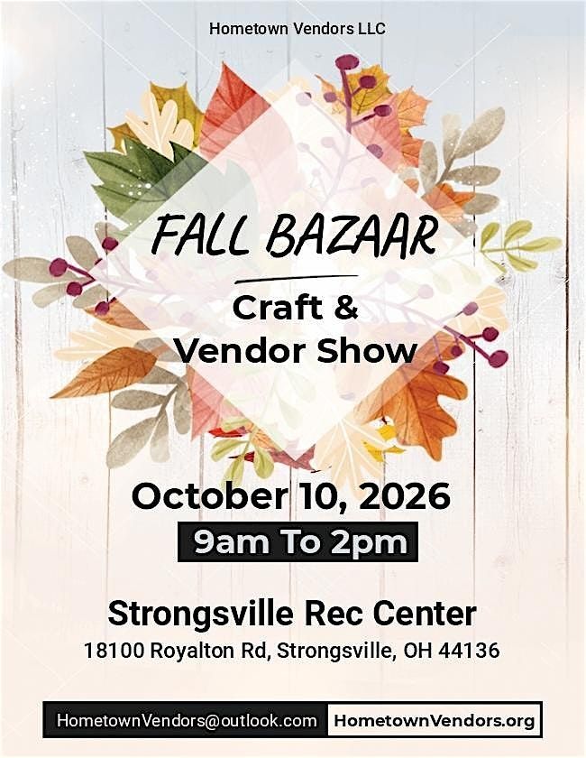 Come out and shop with local vendors for our Fall Bazaar craft and vendor show. Admission is Free.About this Event