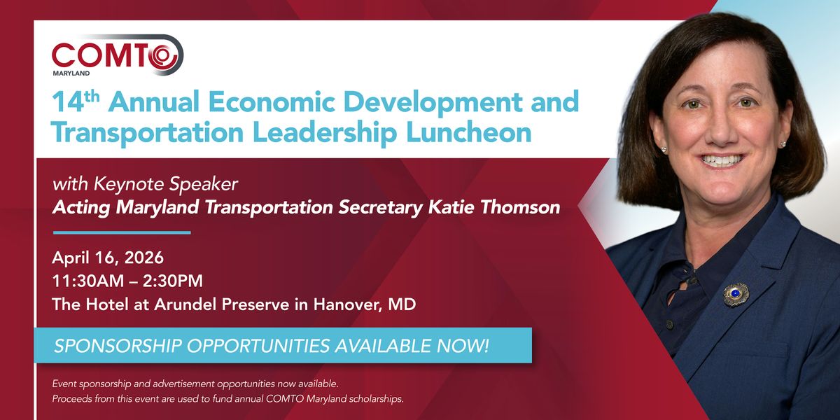 Join us on Thursday, April 16, 2026, for our 14th Annual Economic Development and Transportation Leadership Luncheon with Maryland Transportation Acting Secretary Katie Thomson as our Keynote Speaker. This event helps raise funds for our annual scholarships awarded to students currently enrolled in Maryland schools who are interested in transportation careers.