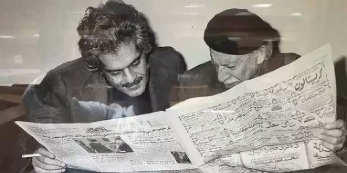 (Image credit): Celebrated Egyptian film star Omar Sharif meets pioneering playwright and intellectual Tawfiq el-Hakim in his office at Al-Ahram, where they held a wide-ranging conversation about Sharif’s experience living and working as an actor in the West. The conversation was published over 3 pages in Al-Ahram on 2 January 1977. Source: Al-Ahram Digital Archive.