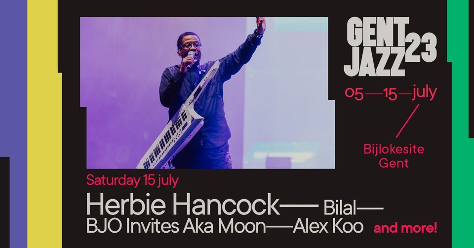 Het festival wordt op 15 juli afgesloten door niemand minder dan jazzlegende Herbie Hancock. Hij begon zijn carrière in de jaren zestig bij Miles Davis en werd al snel als revolutionair gezien. Zijn echte revolutie begon echter pas in de jaren zeventig met zijn fusion jazz waarmee hij miljoenen mensen wist te bereiken. Herbie Hancock is trouwens nooit gestopt met baanbrekend zijn. Dat zal hij met plezier bewijzen op de laatste avond van Gent Jazz.Op de unieke sound van Aka Moon waarbij jazz, rock en invloeden uit wereldmuziek samenvloeien in een onnavolgbare avant-garde mengeling zit absoluut nog geen sleet. Hetzelfde kan gezegd worden van Brussels Jazz Orchestra. Zij mogen dit jaar hun dertigste verjaardag vieren en ook zij zijn in de fleur van hun carrière. De ideale gelegenheid om beide bands, die ieder in zowel binnen- als buitenland een indrukwekkend parcours aflegden, voor het eerst samen te brengen.