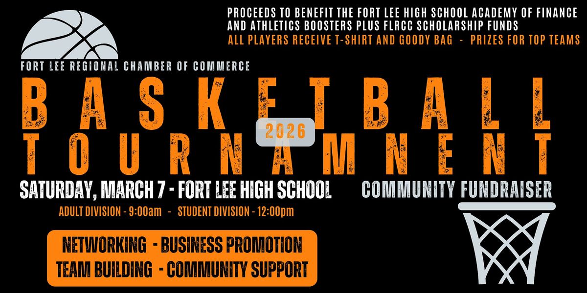 The Fort Lee Regional Chamber of Commerce is excited for our 15th annual 3-on-3 Basketball Tournament and Community Fundraiser to benefit Fort Lee High School's Academy of Finance, Athletic Boosters Club, and the FLRCC Scholarship Funds.