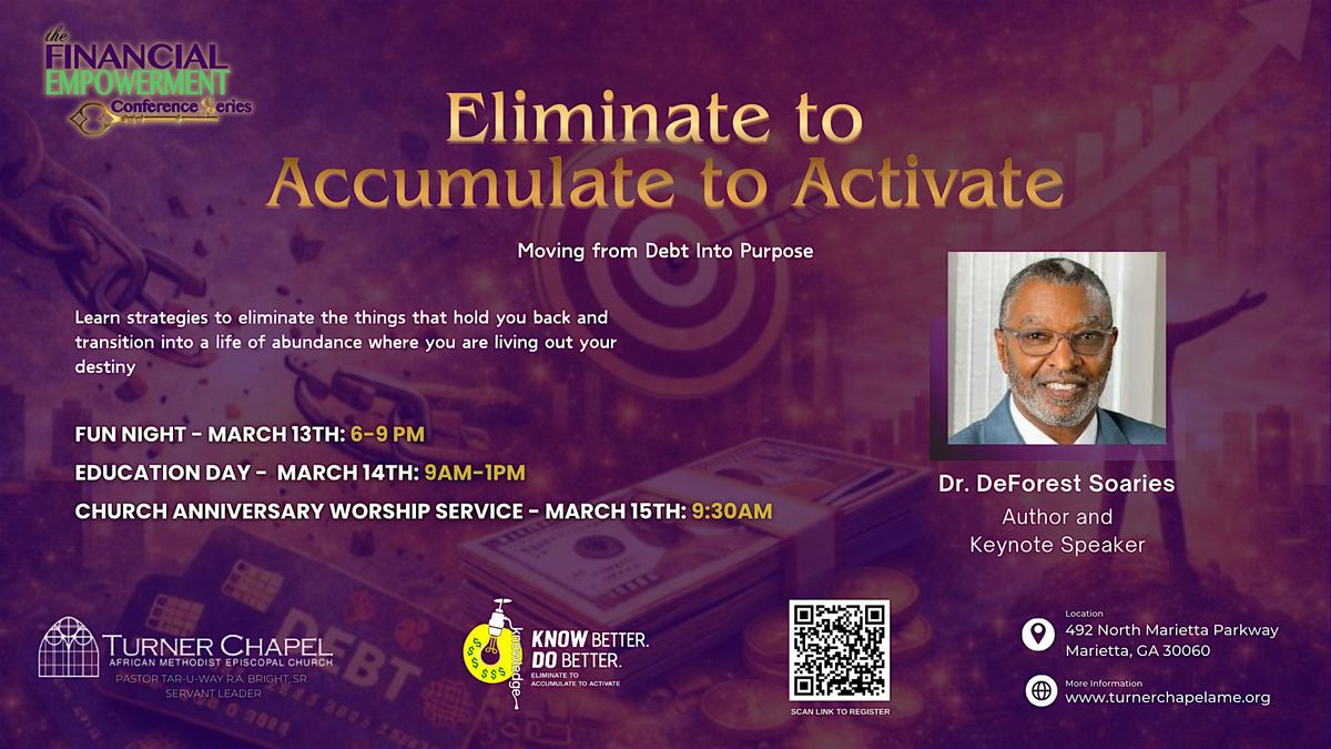 To start the weekend for the 15th Annual Financial Empowerment Conference, we invite you to join us for an evening of good food and fun. There will be plenty of laughing and taking pictures at our photo booth, watching teams compete in our game show emceed by our electric game show host, Chesley McNeil of 11Alive News, and chances for all of our attendees to win prizes. This is a FREE event. Attendees will also have the opportunity to meet with our event sponsors with subject matter expertise to get your financial questions answered. This is an in-person only event, and you can join us at Turner Chapel AME Church. Registration is requested but not required so we can include you in our catering count. Click here to .