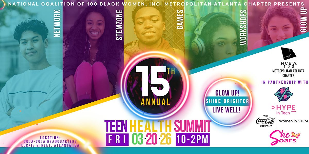 Get ready to GLOW UP at the National Coalition of 100 Black Women, Inc., Metropolitan Atlanta Chapter’s 15th Annual Teen Health Summit—a dynamic, transformative event created to help teens shine brighter, live well, and step confidently into life after high school.