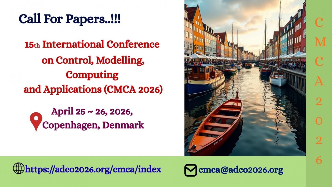 15th International Conference on Control, Modelling, Computing and Applications (CMCA 2026) will provide an excellent international forum for sharing knowledge and results in theory, methodology and applications of Control Engineering, Modelling, Computing and Applications. The goal of this Conference is to bring together researchers and practitioners from academia and industry to focus on understanding Modern Control Engineering, Modelling and Computing concepts and establishing new collaborations in these areas.