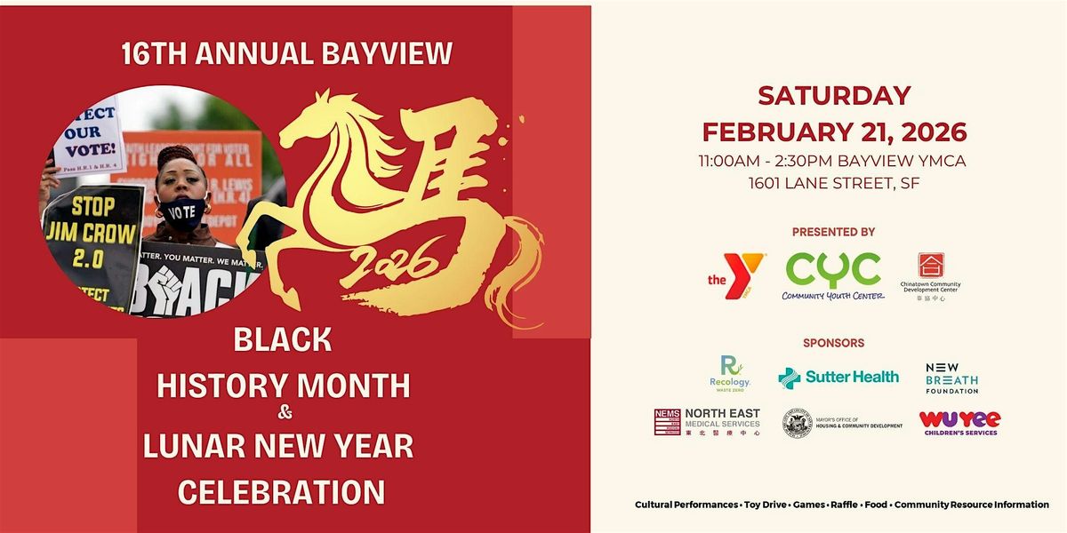 The 16th Annual Bayview Black History Month and Lunar New Year Celebration brings together community members to honor the rich traditions, history, and contributions of African American and Asian American Pacific Islander communities in Bayview. Hosted by Community Youth Center of San Francisco (CYC) in partnership with Bayview YMCA and Chinatown Community Development Center, this annual gathering is a celebration of culture, connection, and community pride.