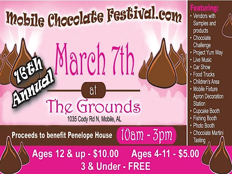 Welcome chocolate lovers! Get ready for a sweet experience at the 16th Annual Mobile Chocolate Festival happening at Greater Gulf State Fairgrounds on March 7, 2026 at 10:00 AM (Central Time). Indulge in a variety of chocolate treats, from truffles to cakes, and everything in between. Don't miss out on this delicious event! See you there!