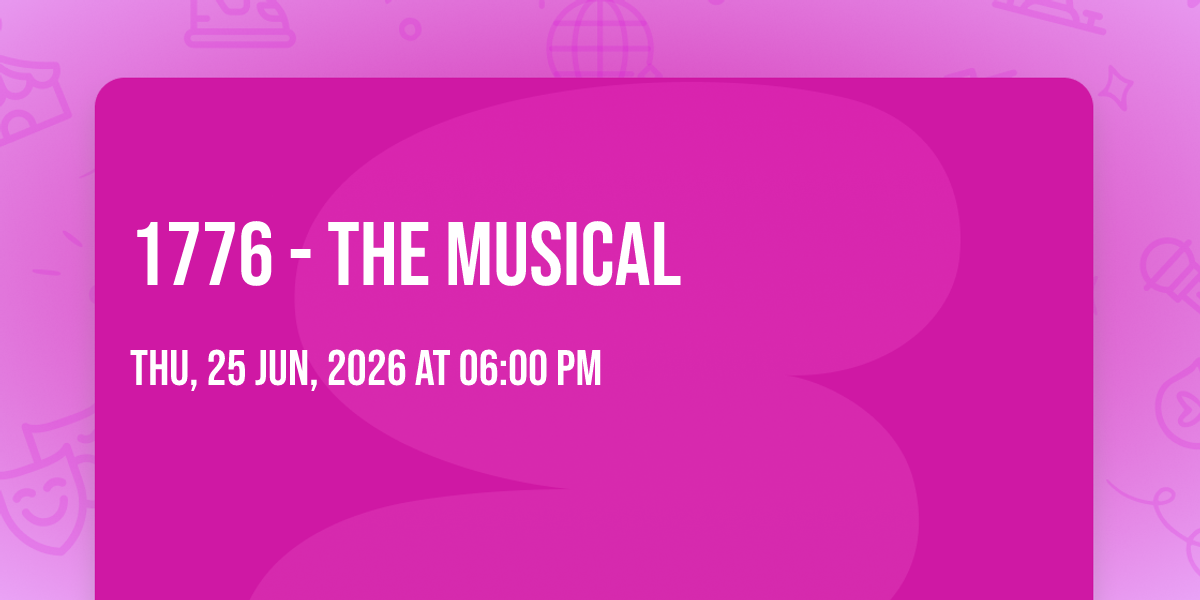 🌟 Journey into wonder at 1776 - The Musical, where extraordinary experiences await around every corner! 🏛️ Set against the backdrop of Owen Theatre - TX in dynamic Conroe, TX, this event promises to exceed all expectations. 📅 Join us on July 3rd, 2026 at 06:00 PM for a celebration that combines innovation, entertainment, and community spirit in perfect harmony. ✨ There will be an atmosphere where memories are made and stories come alive, ensuring every guest experiences something truly remarkable. 🎊 This is more than just an event; it's a journey into the extraordinary!http://maps.seatics.com/OwenTheatre-TX_Endstage_2026-04-24_2026-03-20_0512_03202026_053539_SVGC_tn.png