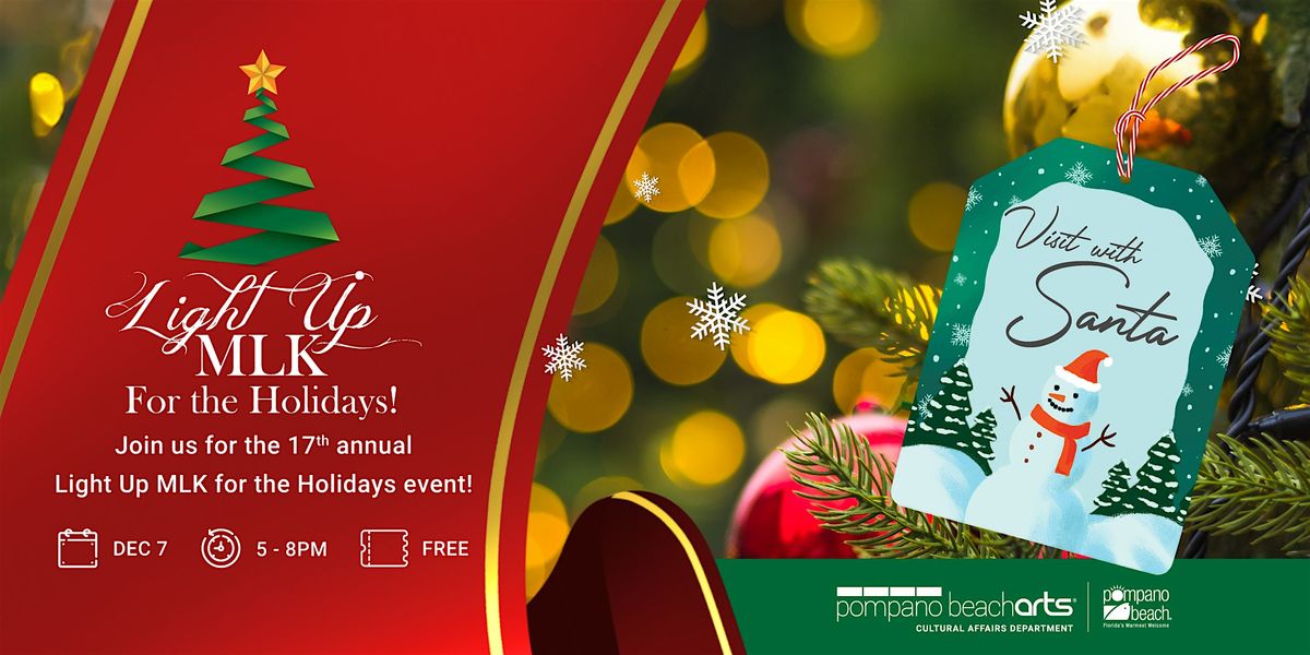 The City of Pompano Beach will kick off the holiday season with the 17th Annual Light Up MLK for the Holidays event featuring live musical performances, a visit from Santa, a beautiful tree lighting ceremony and an array of holiday cheer. The highlight of the evening is the tree lighting ceremony led by Mayor Rex Hardin and other community leaders!